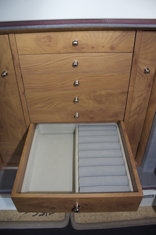 - 10 beautifully crafted wooden drawers for necklaces, bracelets, rings, earrings, watches, etc.