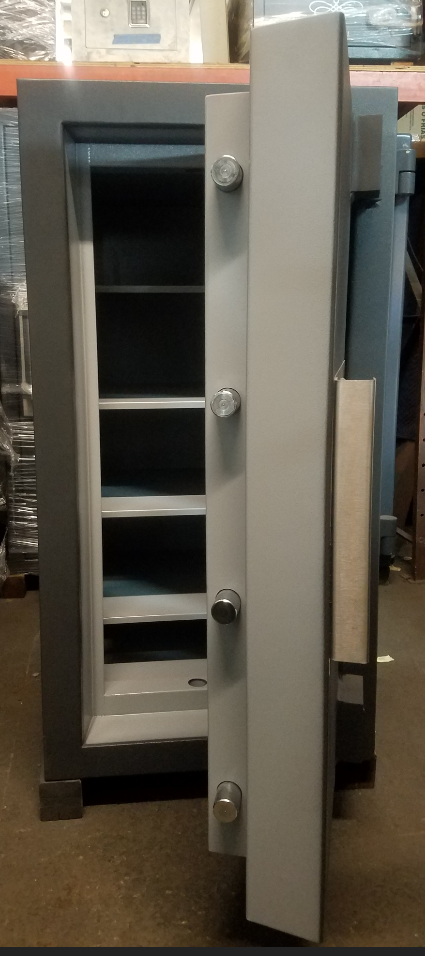 All of our pre-owned safes are professionally resstored with our exclusive three coat paint process (not rolled on). All the mechanisms are professionally inspected and must pass our rigorous testing. The results are a safe that looks and feels like new.