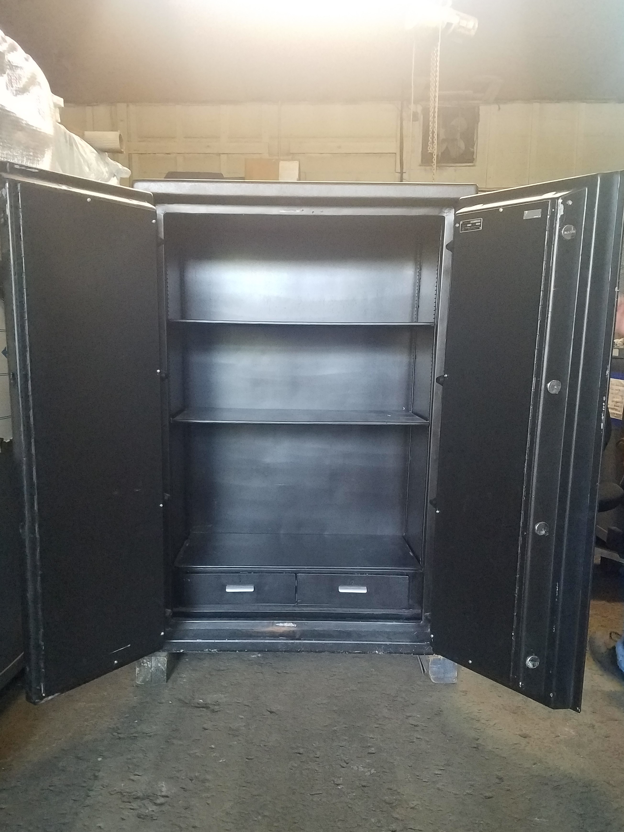 All of our pre-owned safes are professionally resstored with our exclusive three coat paint process (not rolled on). All the mechanisms are professionally inspected and must pass our rigorous testing. The results are a safe that looks and feels like new.