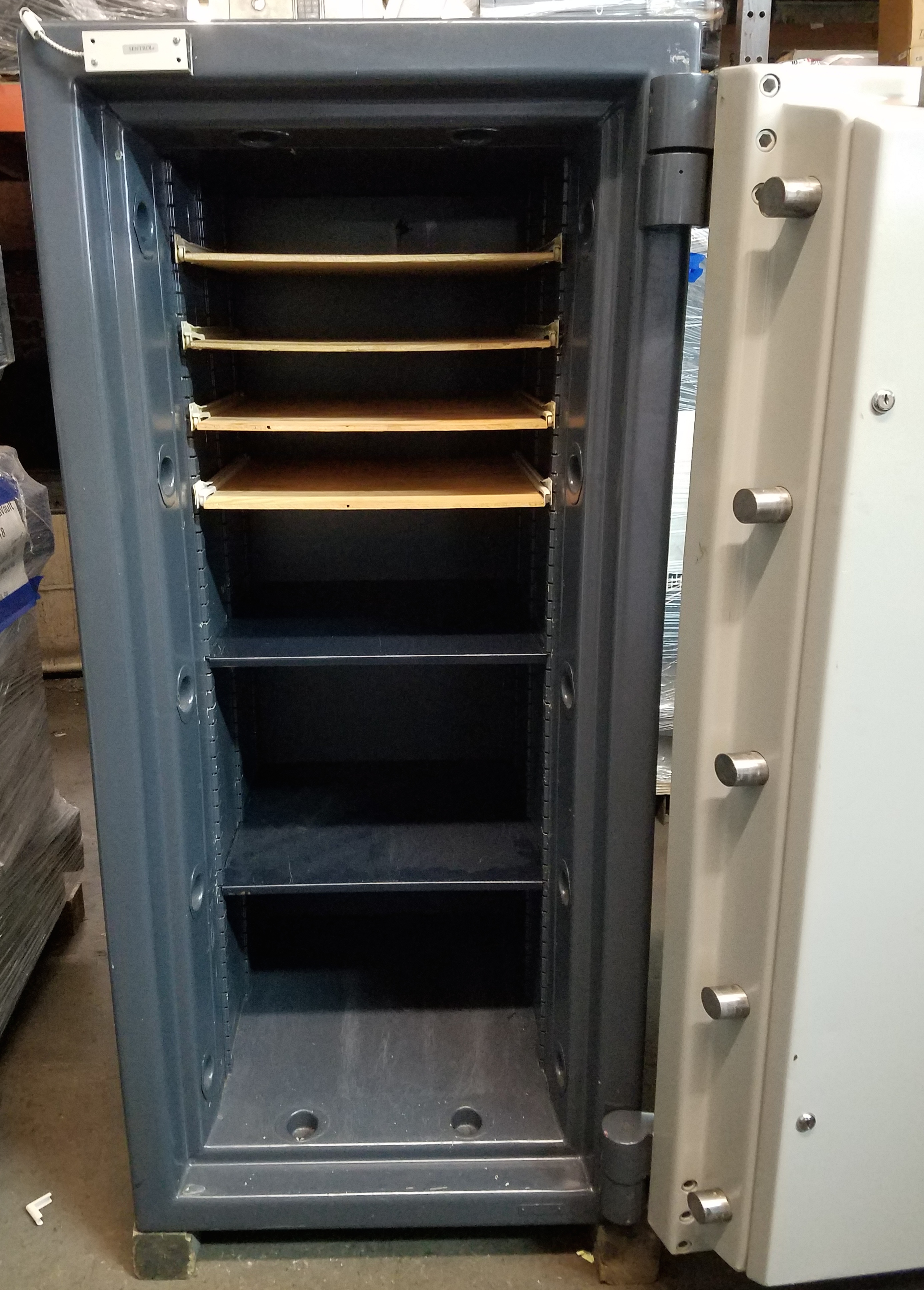 All of our pre-owned safes are professionally resstored with our exclusive three coat paint process (not rolled on). All the mechanisms are professionally inspected and must pass our rigorous testing. The results are a safe that looks and feels like new.